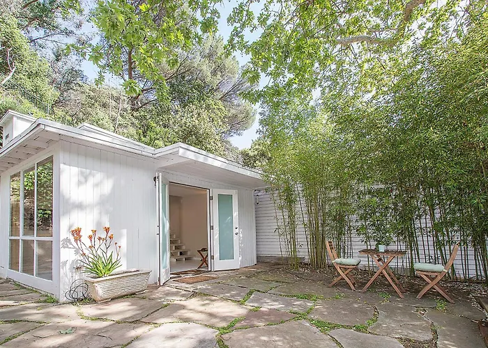 Surplombant le jardin, la villa Beverly Glen Charming Gated Guesthouse Los Angeles se situe à moins de 3 km de points d'intérêt pédagogiques tels que les Bruins d'UCLA.